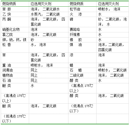 附表1 某些物质燃烧时应选用的灭火剂