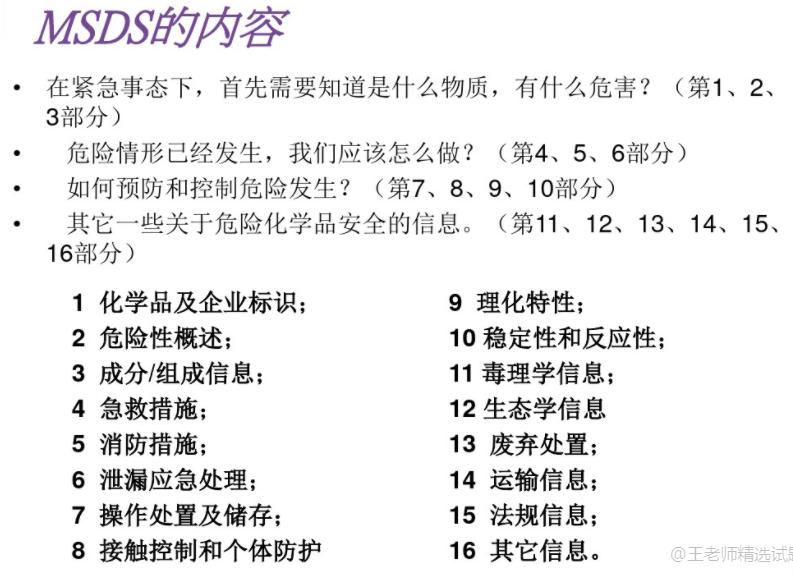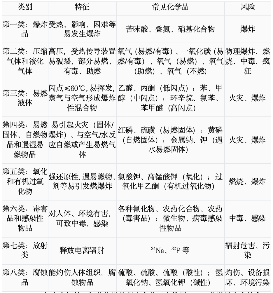 1.定义:指具有毒害、腐蚀、爆炸、燃烧、助燃等性质,对人体、设施、环境具有危害的剧毒化学品和其他化学品。