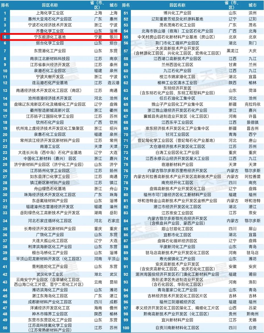 10月9日,赛迪顾问新材料产业研究中心发布《2025化工园区高质量发展研究》报告及2025化工园区综合竞争力百强评价结果。宁东能源化工基地位居百强榜第五!